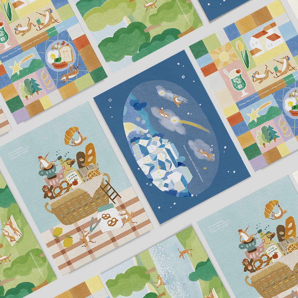 星星之歌/和煦草地/午後編織/晨間舞曲 四款全新插畫明信片一次收藏!
