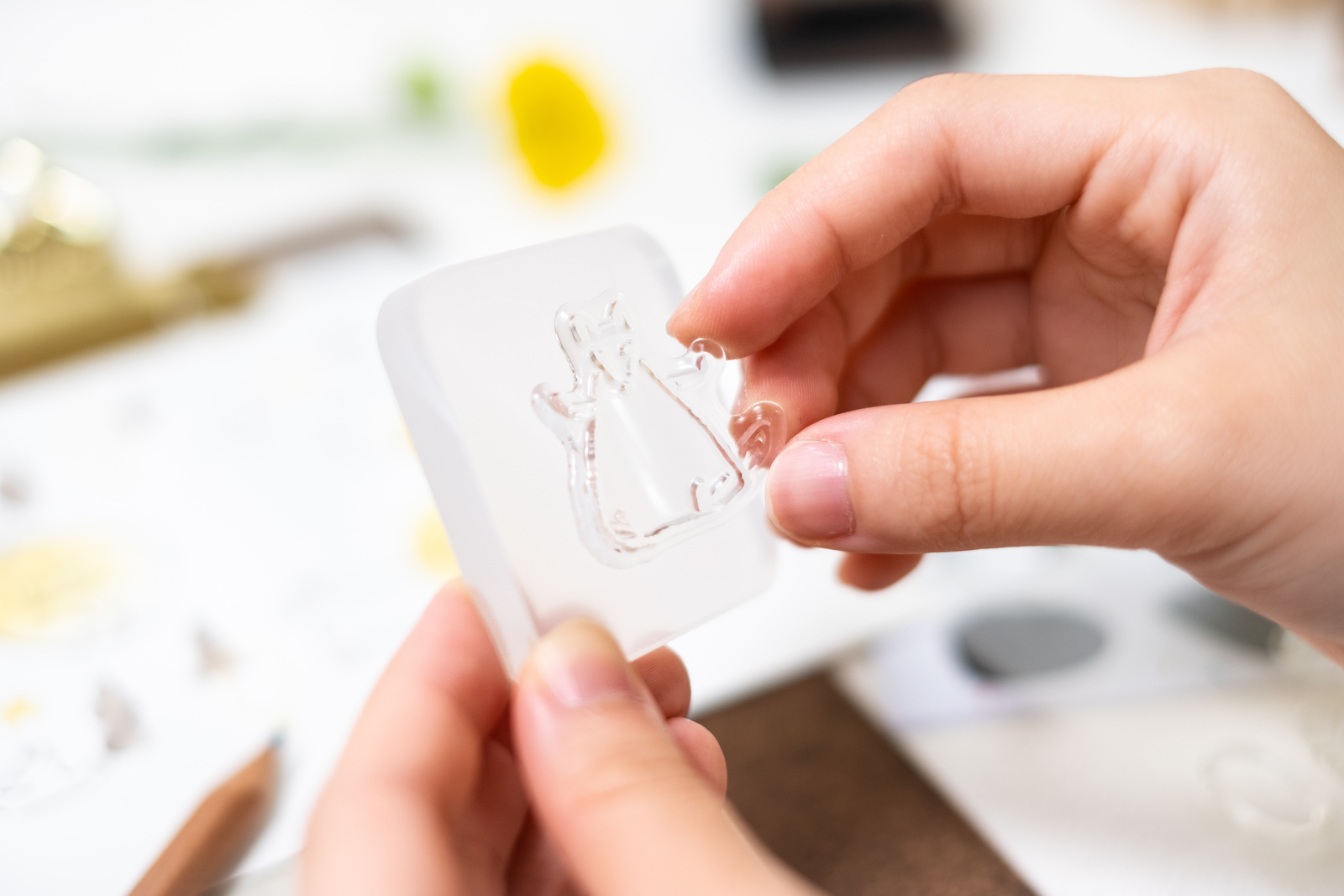 一併附贈,與印章搭配使用的透明的造型壓克力塊(形狀隨機)